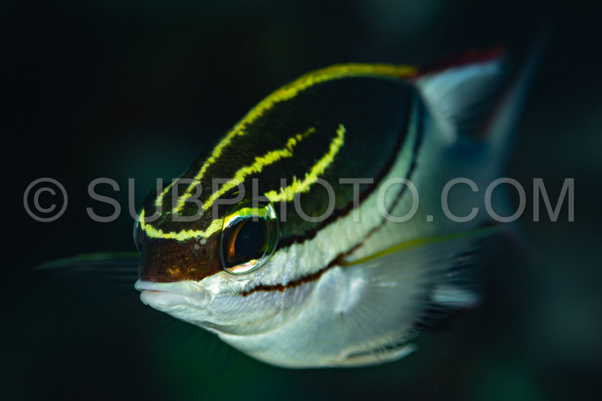 Indonésie, aventure, animal, aquatique, bilineata, biodiversité, biologique, marine, monocle, national, nature, nemipteridae, océan, parc, photographie, récif, scolopsis, scuba, mer, voyage, tropique, tropical, sous-marin, eau, large, sauvage, faune, jaune
